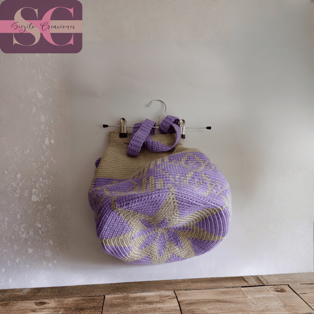 Alma en Calma es una mochila tejida a crochet en técnica WAYUU, que nace desde la suavidad y la intención amorosa. Sus tonos lila y arena evocan serenidad, ternura y una sensación de descanso interior. Es una pieza que invita a bajar el ritmo, a respirar profundo y a caminar con el corazón en calma.